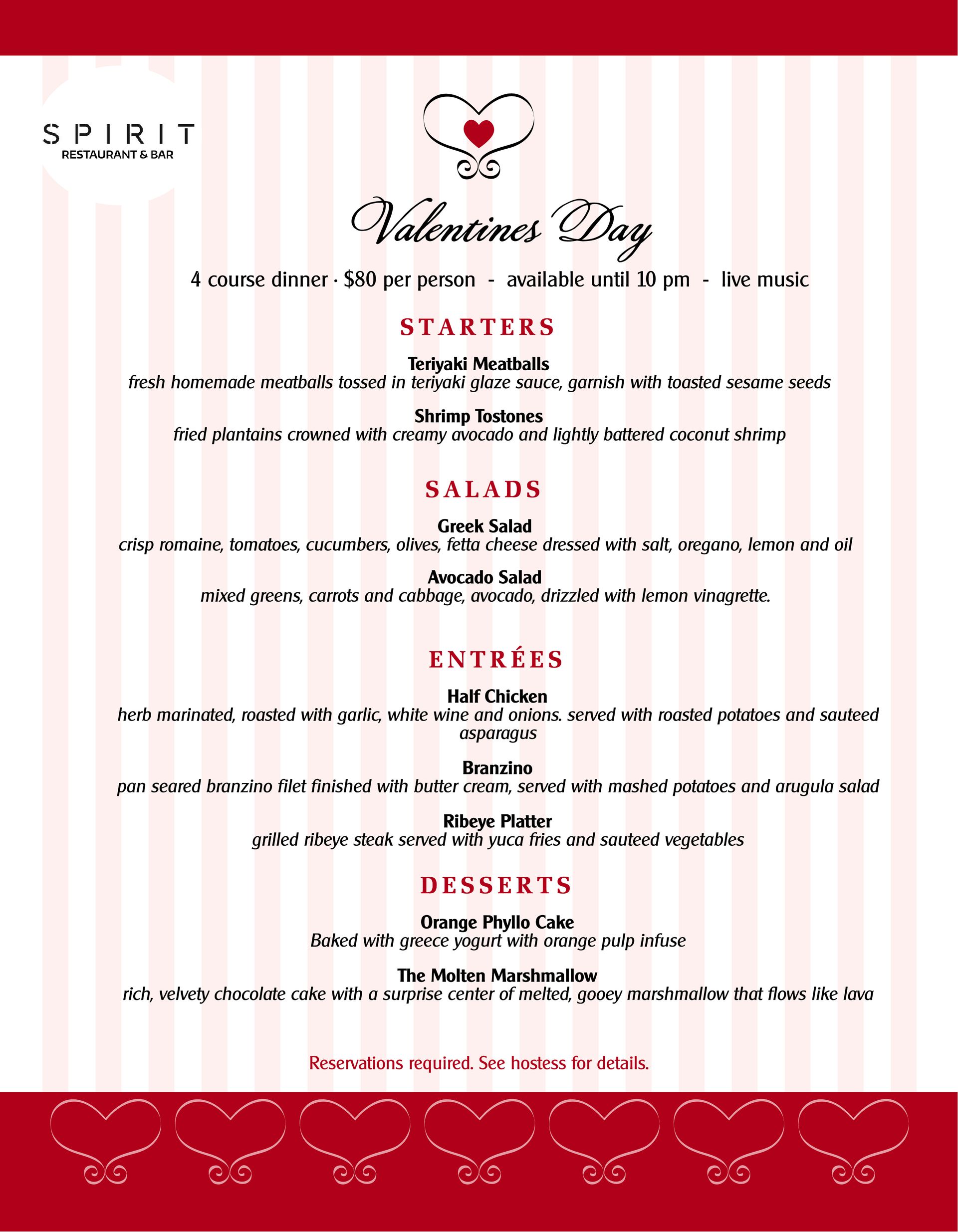 Spirit Bar & Restaurant is a stylish dining and fun destination offering great food, handcrafted cocktails, and a welcoming atmosphere. Our menu features freshly prepared dishes made with quality ingredients, combining classic favorites with modern flavors. Whether you’re joining us for dinner, or late-night dining, every meal is served with care and bold taste. The fully stocked bar offers premium spirits, signature cocktails, beers, and wines, perfect for relaxing or celebrating with friends. With friendly service, vibrant ambiance, and a comfortable setting, Spirit Bar & Restaurant is ideal for casual dining, date nights, group gatherings, and after-work drinks. Experience delicious food, great drinks, and memorable moments at Spirit restaurant and bar